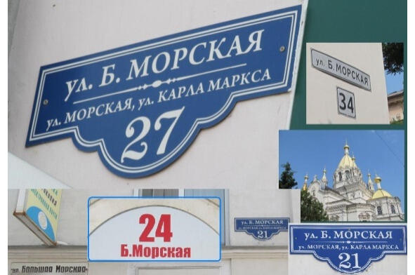 Примечание: в Севастополе одна из центральных улиц «Большая Морская» и на табличках с номерами домов повсеместно она именуется именно так:
