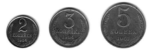 Рис. 3. Монеты достоинством 2, 3 и 5 копеек