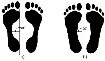 Рис. 1. Отпечатки стоп в норме (а) и при плоскостопии (б)