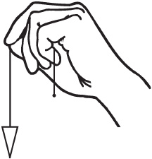 Для определения кодового движения маятника на вопрос: «Это моя исходящая позиция?"» необходимо взять маятник в правую руку, как показано на рис. 1, и задать вопрос: «Покажи мне мою исходящую позицию"».