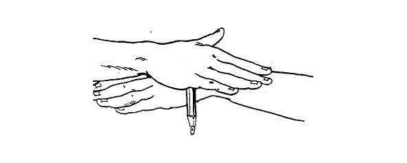 10. Катаем ручку по внешней стороне ладони, сперва по правой руке, потом по левой. (3040 сек.)