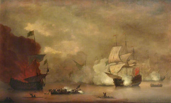 «Мэри Роуз» сражается с семью алжирскими пиратскими кораблями. Картина художника Перера Монами.