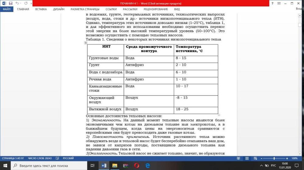 Таблица 1. Сведения о некоторых источниках низкопотенциального тепла