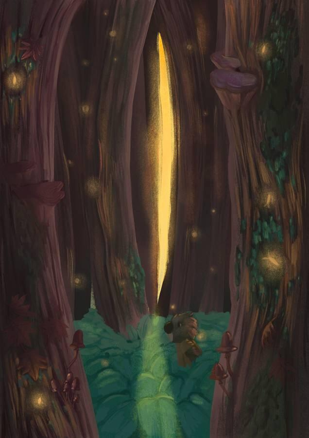С приходом сумерек Сказочный лес преображался: деревья отбрасывали длинные тени, изумрудный мох становился серым, цветы складывали лепестки в бутоны, которые заново распустятся только утром. Привычные звуки дня тоже уступали место каким-то другим, неизвестным ночным. Голоса птиц смолкли, утихло чириканье воробьёв, трескотня сорок и жужжание пчёл. Зато в воздухе, напоённом запахом вечерней прохлады и свежести, раздавались трели цикад и сверчков. Звуки и краски становились приглушёнными, мягкими, а аромат сырой земли и ветерок, тянувшийся с реки, наоборот, сильнее и насыщеннее.