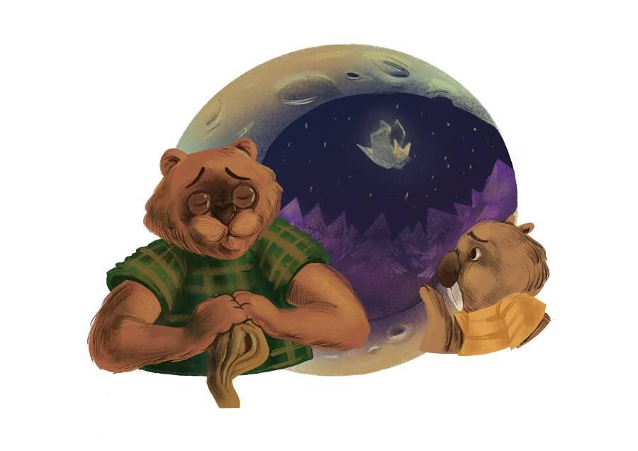 На закате, когда облака стали сиренево-розовыми, а красное солнце уже уходило за тёмные горы на горизонте, бобрёнок Витя вышел из своего домика и сел на берегу реки. Обычно в это время он готовился ко сну чистил зубки и надевал пижаму. Он никогда не покидал свою норку после заката, ведь все звери должны ночью спать. По крайней мере, так думал Витя (да и многие другие). Поэтому его очень удивили слова дедушки Медведя, что с кем-то можно познакомиться в столь поздний час. Но ещё больше Витя удивлялся теперь, сидя на траве под ветками мохнатой ели и наблюдая, как меняется мир вокруг него.