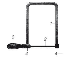 1 рамка; 2 пильное полотно (пилка); 3рукоятка; 4 крепежные винты