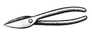 Ножницы слесарные. Они режут металл под давлением двух сдвигающихся навстречу друг другу шарнирно соединенных лезвий.