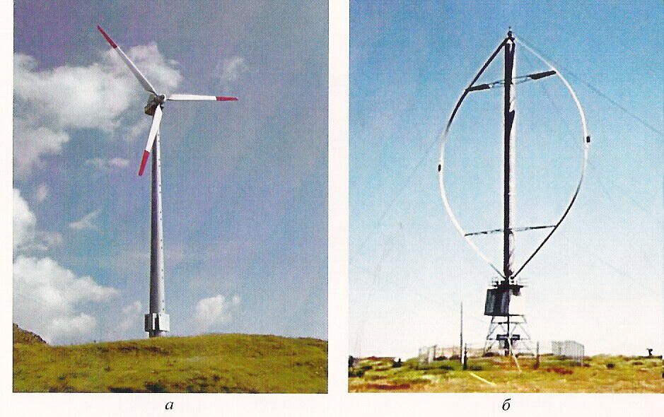 Классификация по типу применяемой ветротурбины. В настоящее время применяются две основные конструкции ветроагрегатов: горизонтально-осевые и вертикально-осевые ветродвигатели. Наибольшее распространение получили ветроагрегаты первого типа.