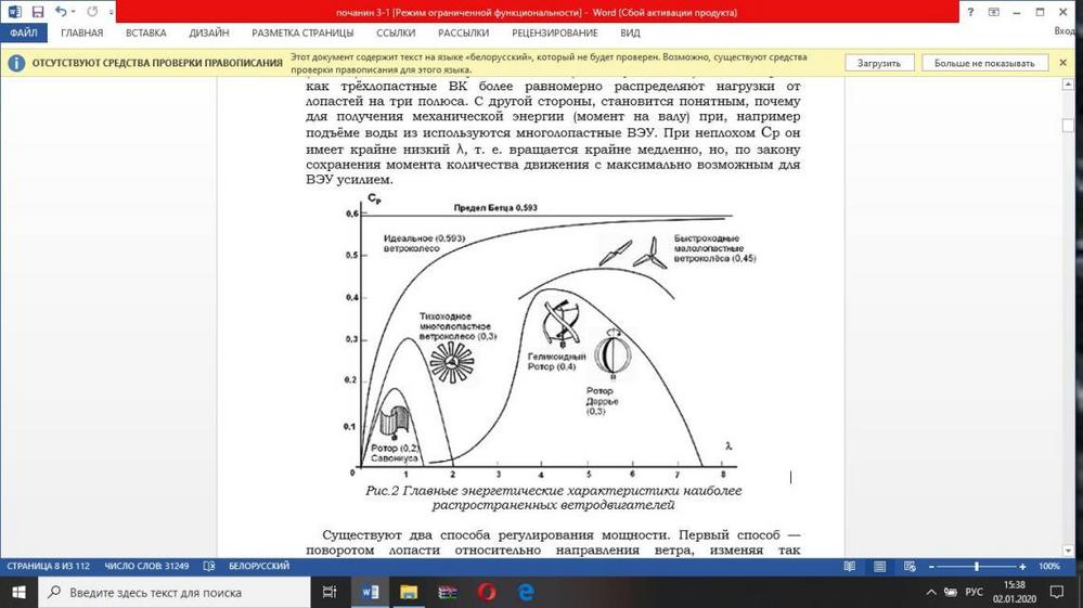 Быстроходность остаётся одним из определяющих понятий для выбора типа ВЭУ. Оперируя этими двумя важными параметрами и глядя, на вышеприведённый график можно рассуждать о том, почему же в современной ветроэнергетике в подавляющем большинстве случаев применяют трёхлопастные горизонтальноосевые башенные ВЭУ, использующие подъёмную силу. ВК использующие подъёмную силу имеют больший коэффициент использования мощности, чем использующие силу сопротивления при достаточно большом коэффициенте быстроходности. Башенные потому что позволяют использовать ветровой поток на высоте 100 м от земли, горизонтальноосевые по тем же причинам (наилучшее соотношение λ с Ср ). А вот с тремя лопастями вопрос остаётся открытым. Казалось бы, двухлопастные ВК имеют наилучшее соотношение λ с Ср , а применяются крайне редко. Точнее в «большой» ветроэнергетике вообще практически не применяются. Причин две: при слишком высоком λ может возникнуть такая ситуация, когда конец лопасти уйдёт в так называемый флаттерный режим при превышении скорости звука (~340 м/с); двухлопастные ВК подвержены сложным динамическим нагрузкам (биение) связанным с двухполюсностью (по числу лопастей) ВК. В то время как трёхлопастные ВК более равномерно распределяют нагрузки от лопастей на три полюса. С другой стороны, становится понятным, почему для получения механической энергии (момент на валу) при, например подъёме воды из используются многолопастные ВЭУ. При неплохом Ср он имеет крайне низкий λ, т. е. вращается крайне медленно, но, по закону сохранения момента количества движения с максимально возможным для ВЭУ усилием.