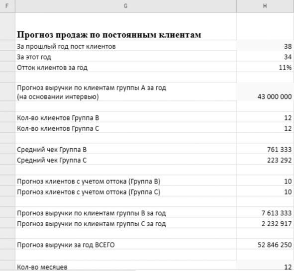 Рис. 2.3. Расчет оттока клиентов и планов по выручке следующего года
