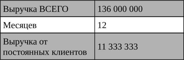 Средний доход с одного клиента нами уже тоже посчитан в таблице выше и составляет 160 000 рублей. Соответственно, умножив средний доход на количество клиентов, мы рассчитаем прогнозную выручку за год от новых клиентов.