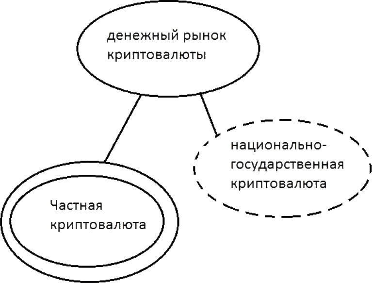 сегмент частных денег, который является новым и представлен частной криптовалютой, не привязанной к одной стране.