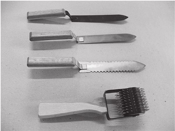 Эти предметы используют только для распечатывания сотов. Нож должен быть хорошо наточенным и нагретым, чтобы не ломать соты.