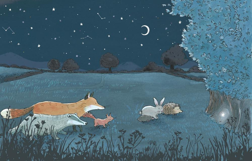 И вот кролик Мягкие Лапки, крот Бархатная Шубка, ёжик Колючка, белка Метёлка, лис Зоркий Глаз и барсук Плутишка побежали смотреть на звезду, которая лежала под кустом боярышника.