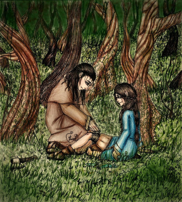 И вот побрел он как-то на охоту хотел косулю подстрелить для племени. Да только так вышло, что уж очень ушел он далеко. Те края были богаты не только лесами, но и священными горами Сихотэ-Алинь. Вот средь этих гор и заплутал наш герой. Долго ли, коротко ли, но вышел он к чистому источнику у маленького, но шумного водопада. И увидел деву, купающуюся в струях этого водопада. И так хороша она была собой, что молодой охотник влюбился беспамятно. Дева увидела его, подобрала одежду, и с достоинством вышла к нему. И начал он нахваливать её красоту, да стать. В жены зовет. А та лишь слушает, да знай себе, смеётся.