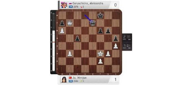 И далее чемпионка мира опять давала шанс Александре Горячкиной играть на ничью. В Партии последовало