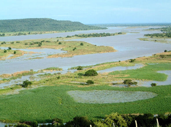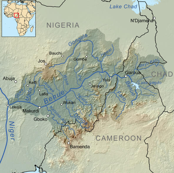 Бенуэ прекрасная судоходная река на протяжении всех 200 миль до Иби, со средней глубиной от 4 до 5 футов (1,2 1,5 м) в течение сухого сезона и течением четыре английских мили в час (6 км/час), что делало работу «шестовиков» довольно тяжелой. Также река изобиловала песчаными отмелями, которые следует избегать. Там, где река сужается, высокие берега увенчаны пышными деревьями, но ее преобладающая ширина составляет тысячу ярдов, а берега низки, и покрыты кустарниками, чередующимися с культивируемыми полями проса.