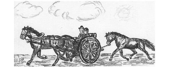Повозка, ходко едет! предположил Александр и оглянулся, на повороте дороги он увидел поднимающую лёгкую пыль двухколёсную бричку, запряжённую серой лошадью, вторая, рыжая, трусила сзади.