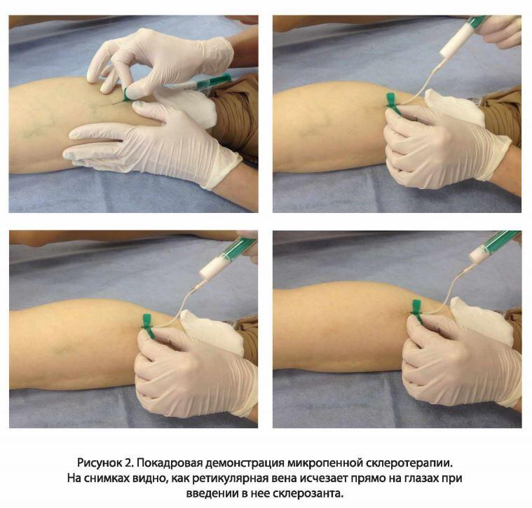 Специального лечения телеангиоэктазии («сосудистые сеточки») и ретикулярные вены не требуют. С целью их устранения как косметического недостатка, большинство флебологов уже много лет используют склеротерапию. Метод незамысловатый, представляет собой введение специального препарата (склерозанта) в расширенные вены. Последние запустевают и через некоторое время исчезают. Склеротерапия практически не дает осложнений и поэтому завоевала большую популярность среди врачей и их пациентов.