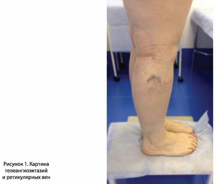 В первой части мы попытаемся коснуться вопросов о пациентках с лёгкими формами хронических заболеваний вен нижних конечностей, при которых проявления болезни могут практически не выявляться во время осмотра и инструментального обследования. Для начала следует остановиться на том, что телеангиоэктазии (так называемые сосудистые сеточки») и ретикулярные вены (рис.1) не являются начальной стадией варикозной болезни (они никогда не переходят во «вторую» стадию в варикозно расширенные вены). Как правило, такие пациентки (и пациенты) если и предъявляют жалобы, то они касаются, в основном, вопросов косметического характера. Иногда у них бывают боли в нижних конечностях без чёткой локализации, наличие преходящих отеков, тяжести, судорог в икроножных мышцах и стопах. При этом пациенты свои неприятные ощущения почти всегда связывают с наличием видимых проявлений, т.е. телеангиоэктазий и/или ретикулярных вен.