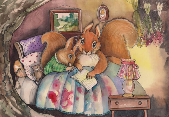 Когда Скок уже лежал в постели, пришла мама-белка.