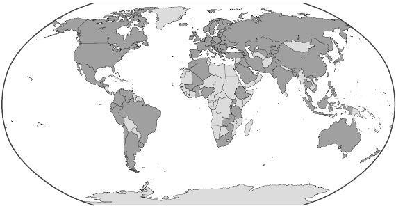 Рис. 1.1. Страны, в которых хотя бы раз был проведено исследование ценностей. В этих странах живет более 90 % всего населения земного шара