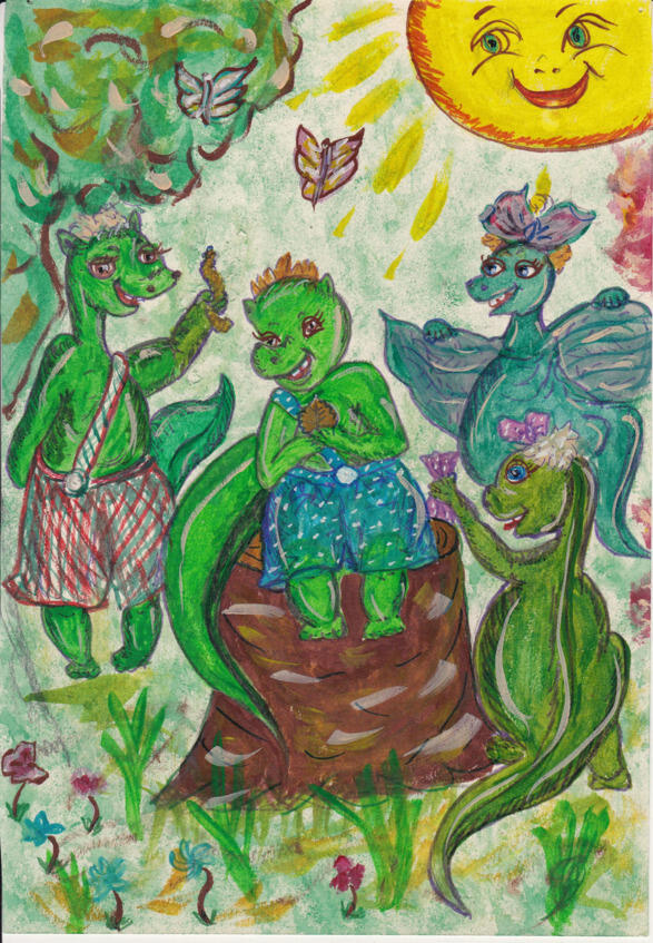 Иногда динозаврикам казалось, что Госик всё выдумывает, но всё равно было интересно и страшно! Но вообще-то, если бы Госик прыгнул с дерева на тигра, который был намного меньше его, то от тигра осталось бы одно мокрое место. Так подумали все динозаврики, но не стали говорить этого вслух, потому что рассказывал Госик очень интересно.