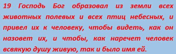 Процесс образования из земли животных и птиц, требовал воплощения в реальность или наречения. Этот процесс описан в современной квантовой физике. Это проведение первого измерения необходимого для существования явления. Имя описывало процесс и было необходимым условием для существования нового.