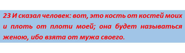В этих строках точно описано каким образом производилось разделение человека на два пола. Человека усыпили, взяли у него ребро и вырастили плоть жены. Человек до этого момента представлял собой совершенную двуполую сущность, в нём одновременно были мужчина и женщина. После разделения жену привели к человеку, который потерял после этой операции ребро. Под словом «ребро» может подразумеваться часть структуры наподобие ДНК, которой обладал человек после сотворения из праха земного.