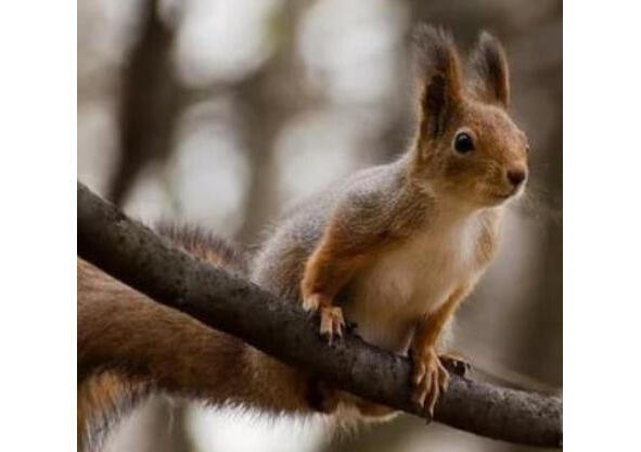 Тотчас же несколько зайцев бросились бегом в разные стороны искать белочку. Вскоре самый быстрый заяц увидел на дереве белочку. Она сидела на дереве возле своего домика-дупла и лущила орешки.