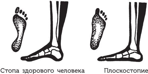 Догадываешься, что такое плоскостопие? Название говорит само за себя. Кости здоровой стопы образуют конструкцию, по форме напоминающую арку: земли касаются только пятка, пальцы, подушечки перед пальцами и узкая полоска наружного края подошвы. «Середка» подошвы и ее внутренний край земли не касаются. При плоскостопии вся подошва лежит на земле. Казалось бы, какая мелочь! Но при длительной ходьбе человек испытывает сильную боль. Дело в том, что пространство под «аркой» заполнено жировой тканью, через которую проходят кровеносные сосуды, нервы и сухожилия пальцев. Плоская стопа постоянно давит на них при ходьбе, и появляется боль.