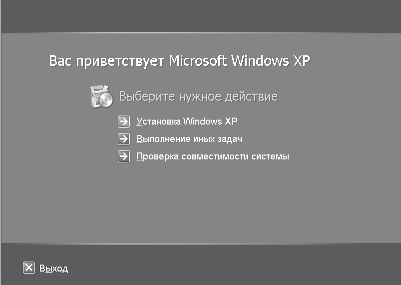 Рис. 1.13. Окно автоматического запуска установочного компакттдиска Windows XP
