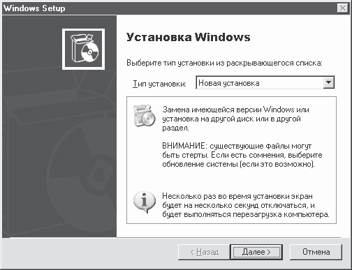 После этого начнется копирование установочных файлов и инсталляция новой операционной системы. После окончания этого процесса перед вами снова появится окно, изображенное на рис. 1.1.