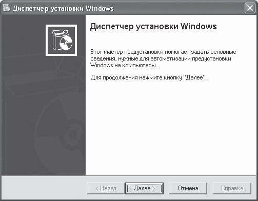 Рис. 1.15. Начало работы Диспетчера установки Windows