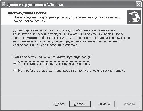 В самом конце следует ввести путь к папке, в которой будет сохранен файл ответов, по умолчанию называющийся unattend.txt. Кроме данного файла, в эту же папку будет помещен файл сценария автоматической установки unattend.bat. Вы можете откорректировать его по своему желанию, однако более простой способ работы с файлом ответов (без использования сценариев) состоит в следующем.