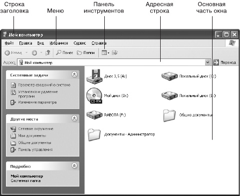 Основным элементом операционной системы Windows XP, как и всех более ранних версий Windows, являются окна (в переводе с английского слово windows как раз и означает «окна»). Естественно, что комфортная работа в системе Windows невозможна без знания основ работы с окнами.