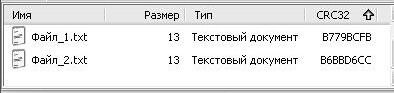 Использование CRC32 обеспечивает очень высокую достоверность контроля. Достаточно изменить единственный бит в контролируемом файле, и значение контрольной свертки станет совершенно другим. Например, взгляните на значения CRC32 для двух текстовых файлов, различающихся одним битом (рис. 2.3).
