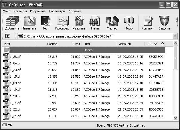 Необходимо отметить, что утилиты контроля целостности данных на основе CRC входят в состав более сложных и мощных защитных программ. В частности, анализ CRC контролируемых файлов выполняют антивирусные пакеты (с целью выявления факта несанкционированного изменения этих файлов). В программах-архиваторах CRC используется для контроля целостности архива (рис. 2.4).