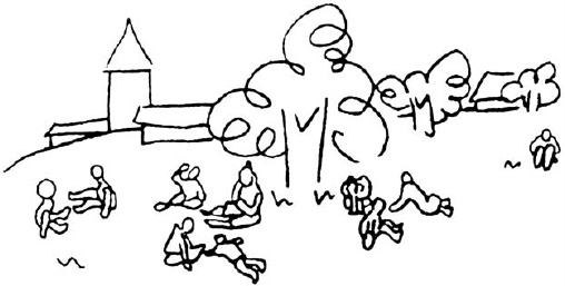 30. Во время прогулки все расположились на траве. Обозначь, где находишься ты.