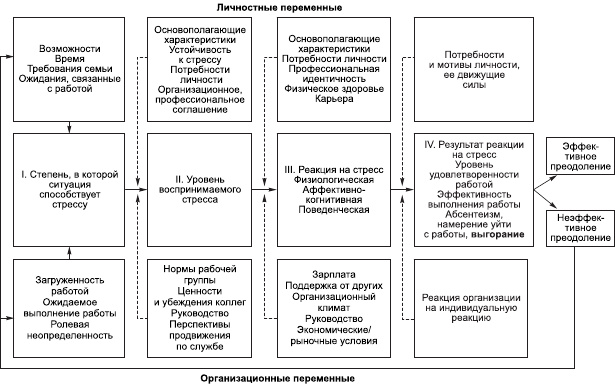 Согласно модели Перлмана и Хартмана, индивидуальные характеристики, рабочее и социальное окружение важны для восприятия, воздействия и оценки стресса в совокупности с эффективным или неэффективным преодолением стрессовой ситуации. Данная модель включает в себя четыре стадии.