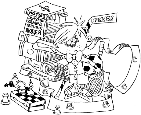 Спрашиваю у мамы: «Как живете?» «Очень тяжело, отвечает. У нас каждый день после школы какие-нибудь занятия: то тренировка, то факультатив, а теперь еще и сольфеджио, специальность» «Ну а стоит оно того?» «Стоит, конечно; я в свое время хотела научиться играть на скрипке, но не смогла, зато теперь мой сыночек сможет».
