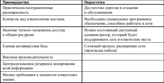 В табл. 2.2 перечислены основные преимущества и недостатки сети на основе сервера.
