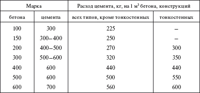 Показатели жесткости бетонной смеси и расход цемента для бетонных конструкций приведены в табл. 1.3 и 1.4.