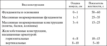 Жесткость бетонных смесей, укладываемых в различные конструкции