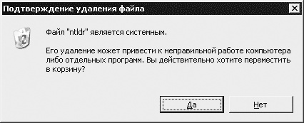 Рис. 1.3. Предупреждение при попытке удаления системного файла
