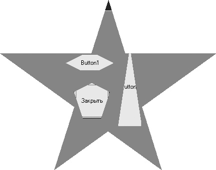 Теперь самый интересный из предусмотренных примеров создание окна и кнопок в форме многоугольников, а именно: окна в форме звезды, кнопок в форме треугольника, пяти и шестиугольника (рис. 1.7).