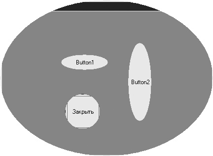 Ширина и высота эллипсов в приведенном примере равна, соответственно, ширине и высоте тех окон, для которых создаются регионы. При необходимости это можно изменить, например, если требуется, чтобы все кнопки были одной величины независимо от размера, установленного во время проектирования формы.