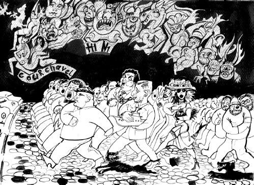 Седьмого ноября, в День Октябрьской революции, в годовщину мистического парада, Лужков устроил в Москве нечто чудовищное и дурацкое, кощунственное и бездарное. По своему обыкновению, по-лужковски, как ему подсказывал его вкус, его совесть, его историческое чутье, он воспроизвел мистерию сорок первого года. Тут было все. И массовик-затейник со стыдливыми намеками на сталинскую речь. И кумачовые полотнища с обрывками революционных текстов. И обилие красных знамен, которые должны были умилить продрогших ветеранов. И ряженые офицеры московских академий, которые будто бы прямо с площади шли в бой под Волоколамск, а на деле шагали под секиру сердюковских реформ. Бутафорские кавалеристы придворного полка имитировали конницу Доватора. Плащ-палатки советских пехотинцев ненадолго сменили гомосексуальную форму Юдашкина. «Т-34» катили по площади в минуты, когда уничтожался великий танковый завод на Урале. И, конечно же, ни слова о Вожде. Камера не показывала мавзолей. Не показывала надпись «Ленин». Зато нет-нет, да и мелькнут сытые физиономии устроителей, их пустые рыбьи глаза. А потом пошли какие-то пингвины и попугаи в пестром, то ли сибирские дивизии, то ли панфиловские полки, как их представляло себе воображение низменных халтурщиков.
