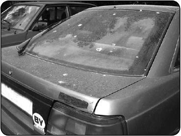 Отсутствие мытья автомобиля после «птичьих неожиданностей». «Птичьи неожиданности» (рис. 1.6) способны обесцветить любую краску, не зря ведь у птиц «прямой провод», то есть очень быстрое переваривание пищи. Вот и подумайте, если птица за минуту переваривает зерно, то за какой срок ее желудочный сок растворит автомобильную эмаль. То же относится к раздавленной мошкаре. Некоторые насекомые обладают высокой кислотностью (или щелочностью), а кислота и щелочь нарушают целостность лакокрасочного покрытия: появляются обесцвеченные пятна, покрытие становится точечно хрупким, могут появиться микротрещины и, как следствие, очаги коррозии.