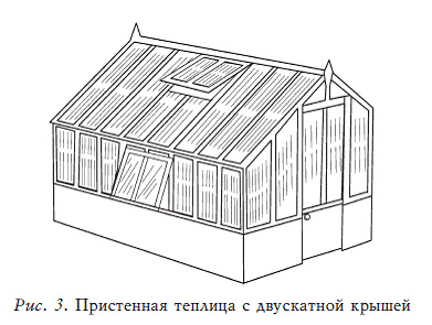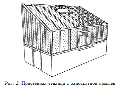 Такую теплицу лучше всего возвести возле южной или западной стены дома (рис. 2), от которых она нагревается. Очень часто такая теплица имеет дверь, которая ведет в дом.